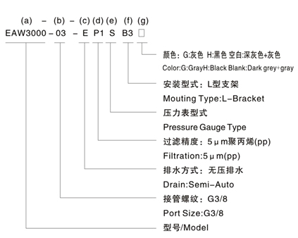 EAW1000 01 G1/8 空白 手动排水 P1 5μm聚丙烯(pp) 空白 无压力表 空白 不带支架 空白 深灰色+灰色