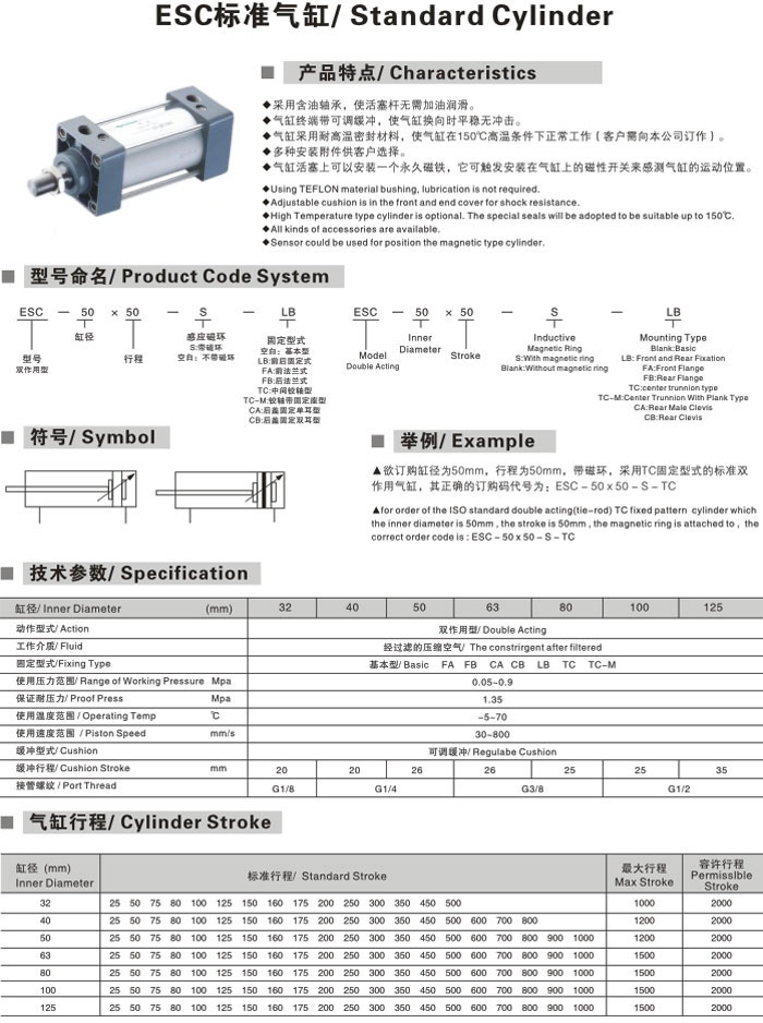 产品标题:ESC标准气缸,EASUN亿日气动气缸