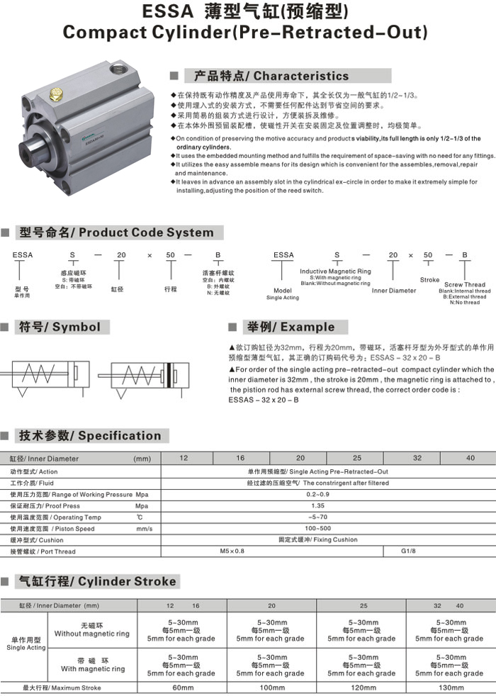 产品标题:预缩型ESSA薄型气缸,EASUN亿日气动气缸