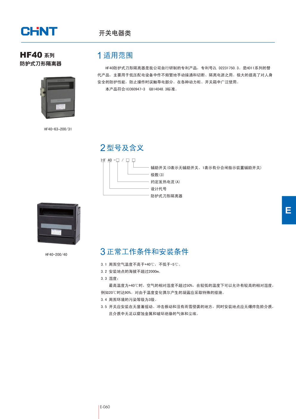 HF40防护式刀形隔离器 | |