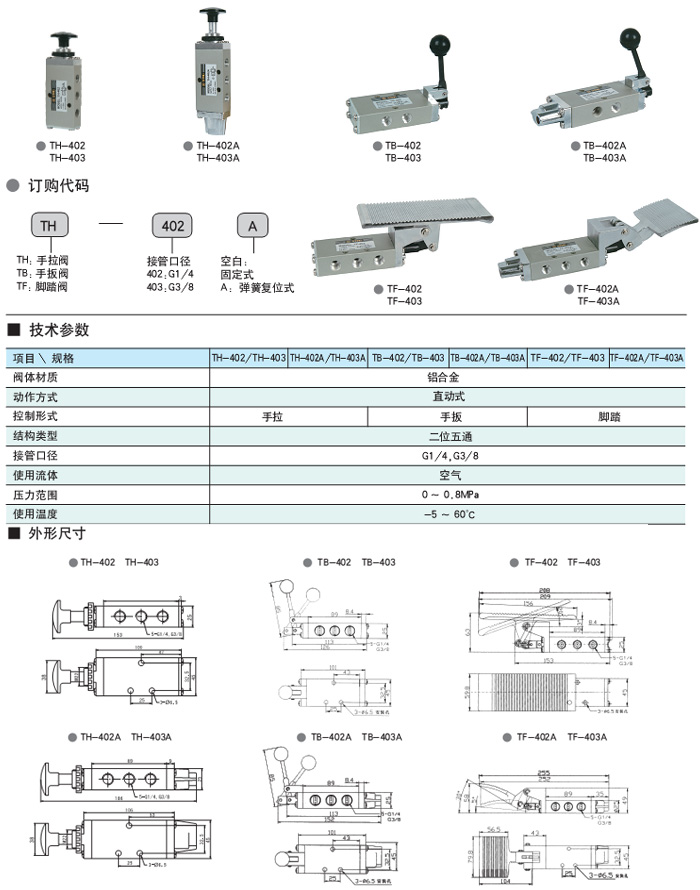 产品标题:TH-402A,STNC气动控制元件,手拉阀